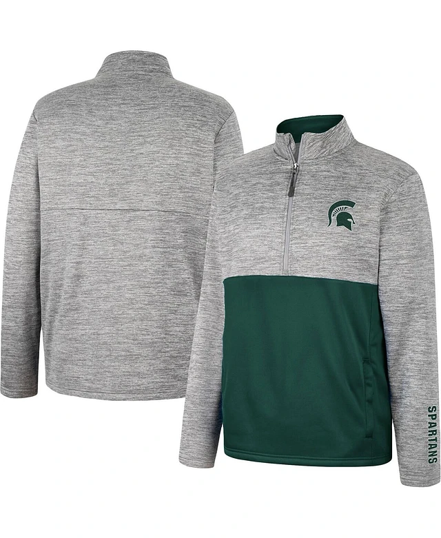 Men's Colosseum Gray, Green Michigan State Spartans Bushwood Fleece Quarter-Zip Jacket