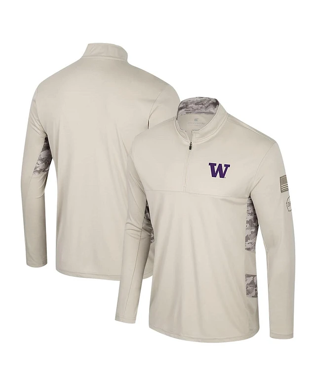 Colosseum Men's Natural Washington Huskies Oht Military Appreciation Quarter-Zip Jacket