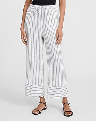 High Waisted Striped Gauze Pull On Wide Leg Ankle Pant