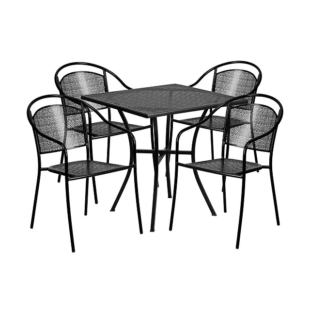 Commercial Grade 28" Square Metal Garden Patio Table Set W/ 4 Round Back Chairs