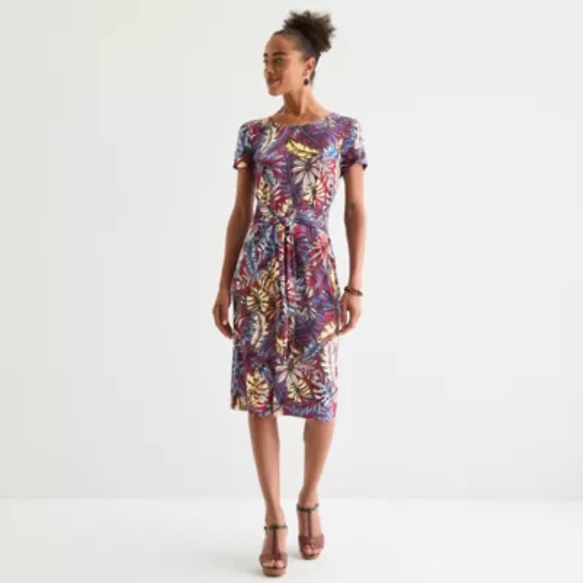 Connected Apparel Womens Short Sleeve Midi Fit + Flare Dress