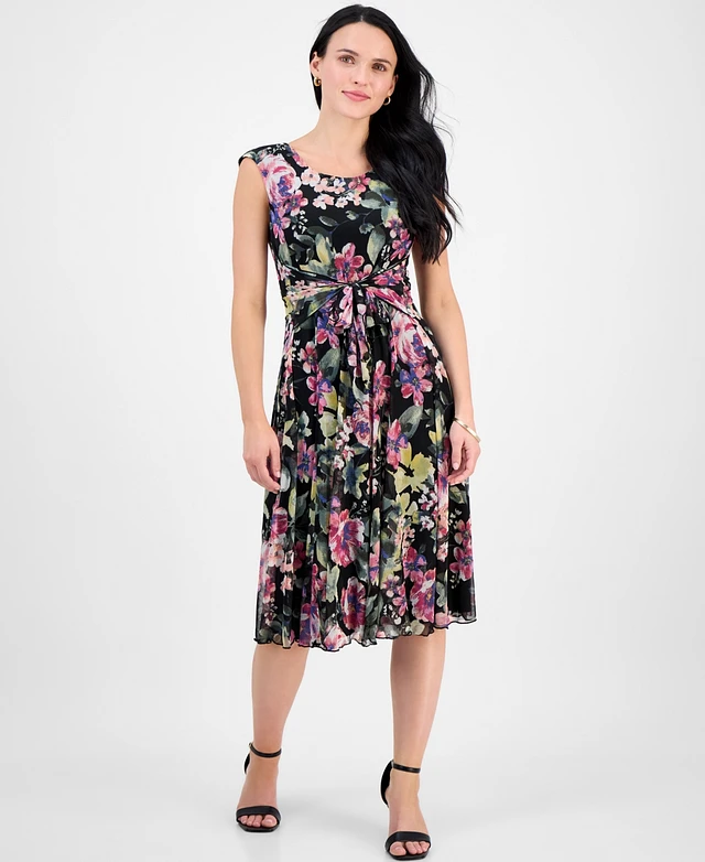Connected Petite Chiffon Floral-Print Tie-Front Dress
