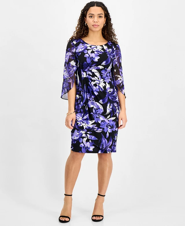 Connected Petite Printed Cape-Sleeve Sheath Dress
