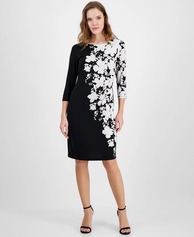 Connected Women's 3/4-Sleeve Printed Sheath Dress