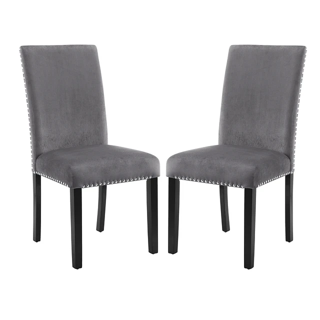 Contemporary Velvet Dining Chair with Nailhead Trim, Set of 2, Gray