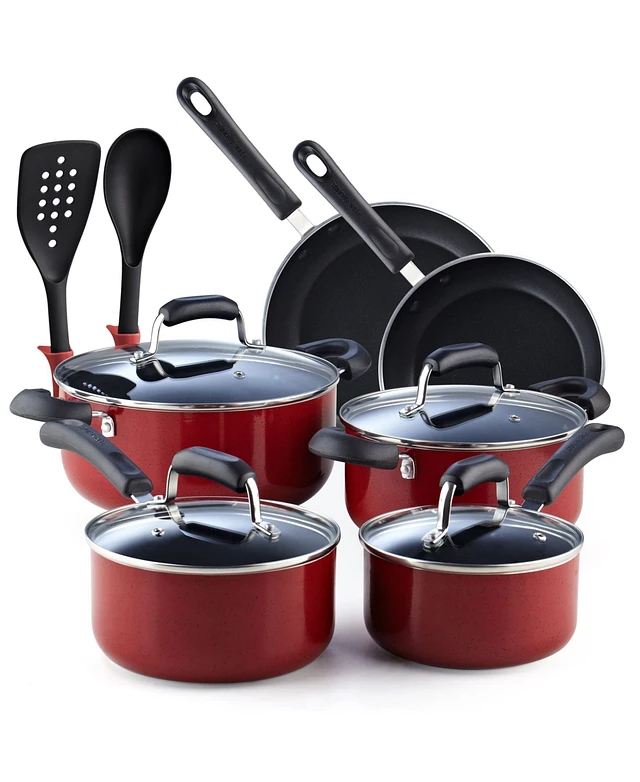 Cook N Home Stay Cool Handle Pattern 12-Piece Nonstick Cookware Set, Marble Red