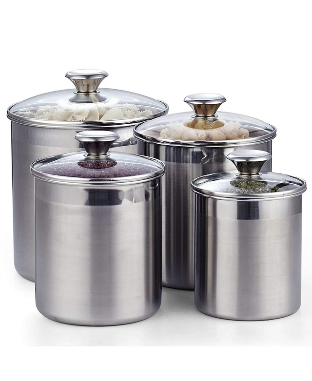 Cooks Standard 4-Piece Stainless Steel Food Jar Storage Canister Set Large with Glass Lid