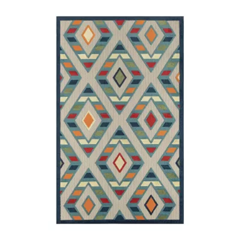 Corazon Striped Diamonds Indoor Outdoor Rectangular Area Rug