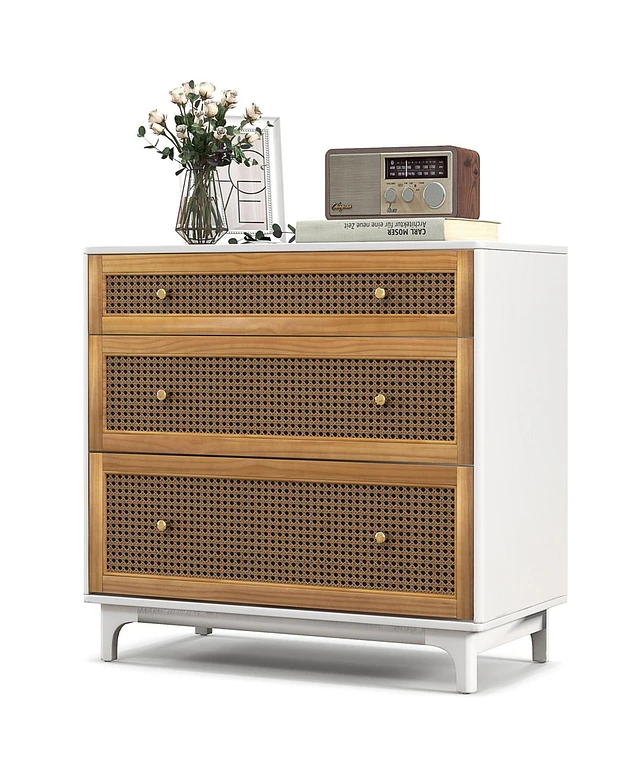 Costway 3-Drawer Rattan Dresser Modern Closet Chest Storage Cabinet Living Room Entryway