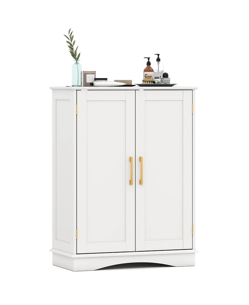 Costway Floor Storage Cabinet Modern Storage Organizer with Adjustable Shelves &2 Doors