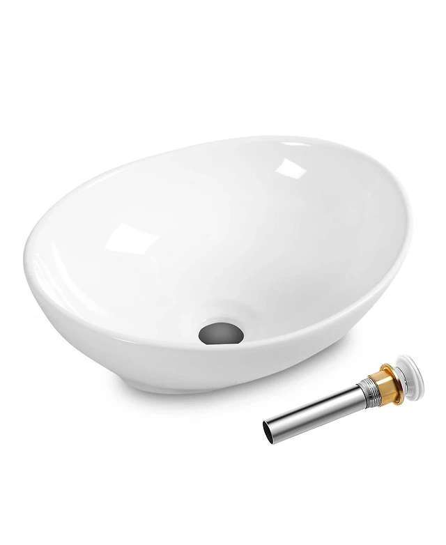 Costway Oval Bathroom Basin Ceramic Vessel Sink Bowl Vanity Porcelain w/ Pop Up Drain