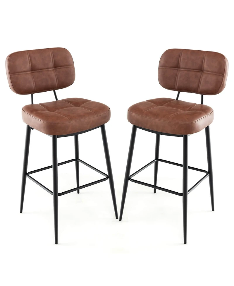 Costway Set of 2 Bar Stools with Padded Seat Footrest & Metal Legs Pu Leather for Kitchen