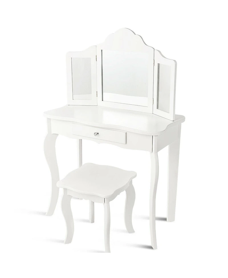 Costway Vanity Table Set Makeup Dressing Table Kids Stool Mirror