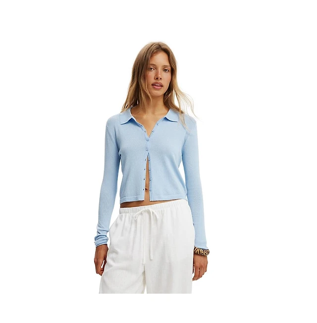 Cotton ONWomen's Knit Button Polo Long Sleeve