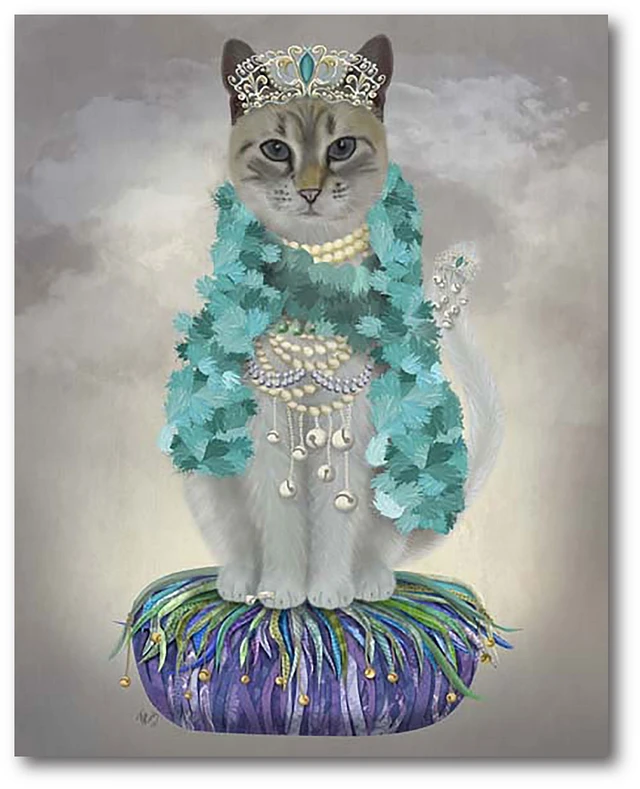 Courtside Market Grey Cat with Bells Full Gallery-Wrapped Canvas Wall Art - 16" x 20"