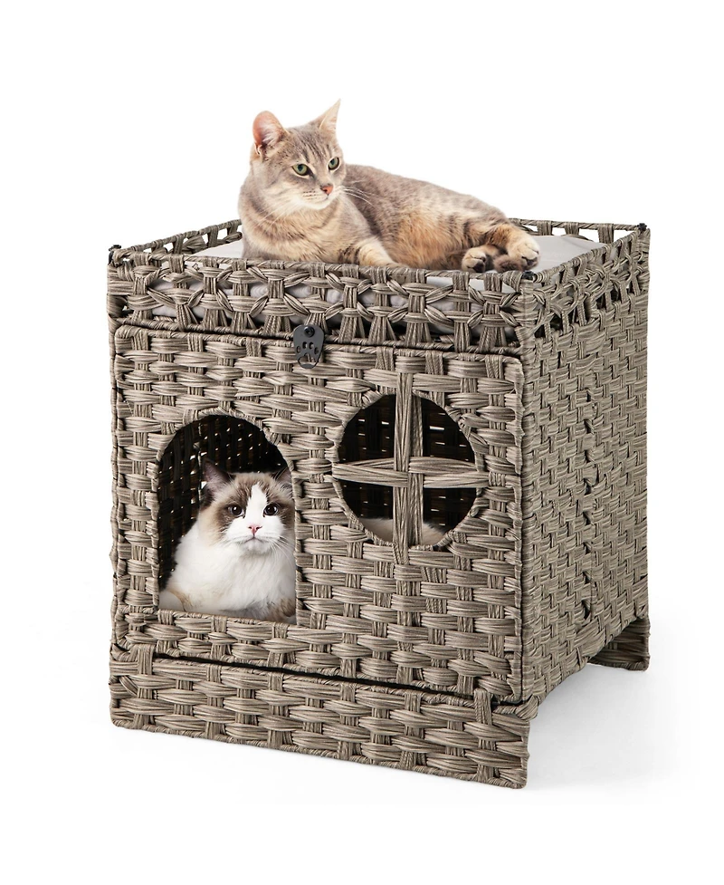 Cozito Cat Litter Box Enclosure Foldable 2-Tier Rattan with Mat in Ponce, PR