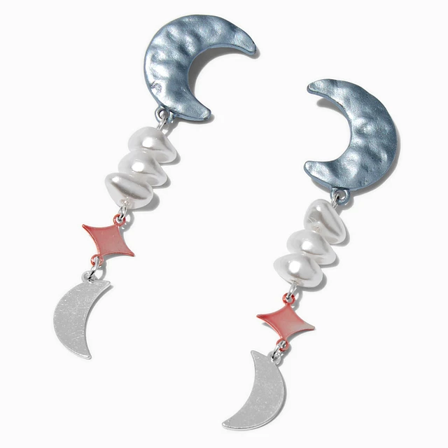 Crescent Moon Pearl Drop Earrings