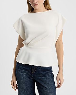 Crew Neck Short Sleeve Draped Peplum Top