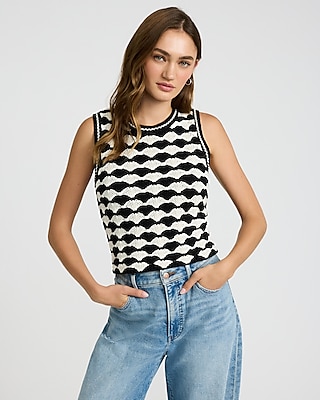Fitted Ribbed Striped Mock Neck Sweater Tank