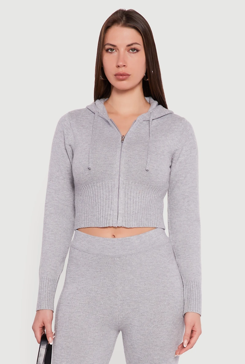 Cropped Hooded Zip Front Sweater