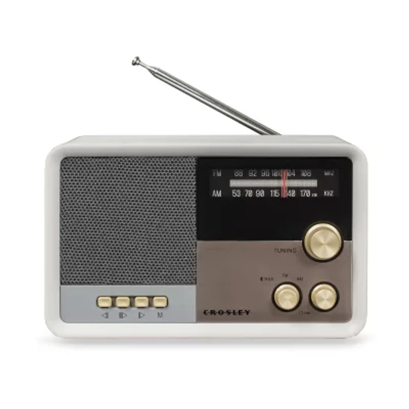 The Crosley tribute am/FM radio sports a clean, modern silhouette that will seamlessly fit in to a variety of decor styles. Gold knobs and buttons add a vintage vibe, while its small footprint makes it ideal for tight spaces such as a nightstand. The tribute features an am/FM radio, but also lets you connect wirelessly to stream your digital music thanks to its built-in Bluetooth receiver.