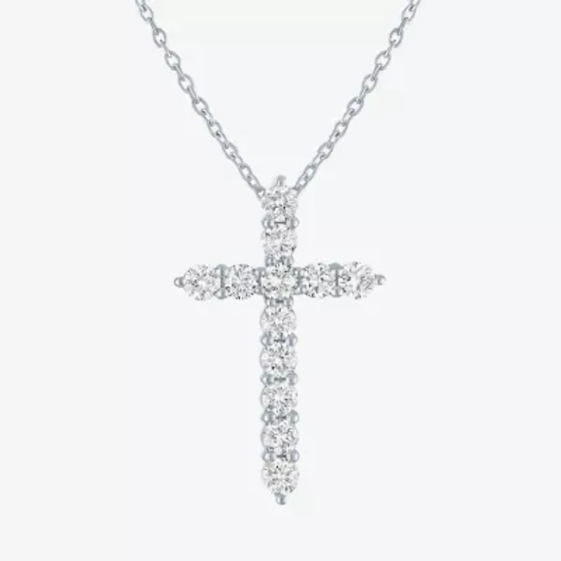 Cross (G-H / Si2-I1) Womens 1 CT. T.W. Lab Grown White Diamond Pure Silver Over Brass Cross 18 Inch Pendant Necklace in Ponce, PR