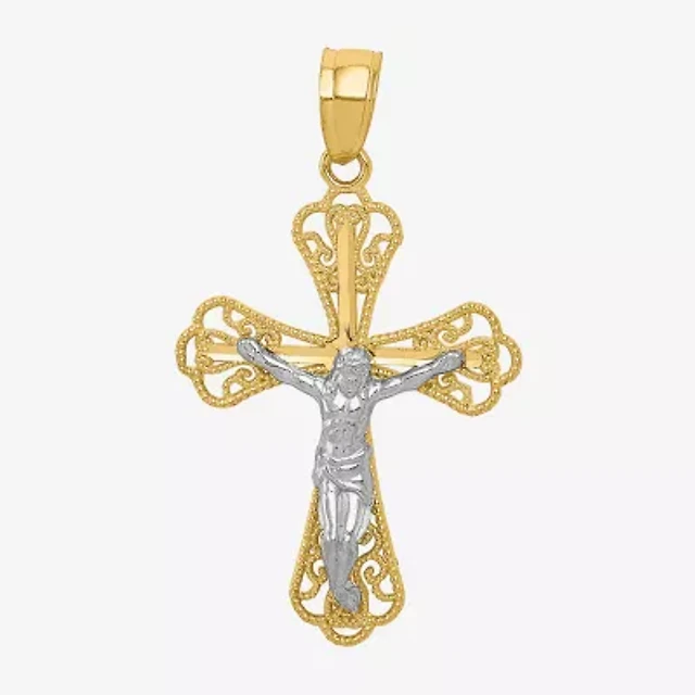 Crucifix Unisex Adult 14K Two Tone Gold Cross Pendant