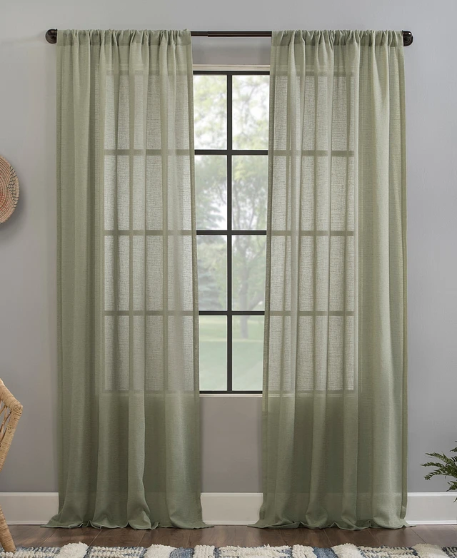 Textured Slub Stripe Anti Dust Linen Blend Sheer Curtain Panel