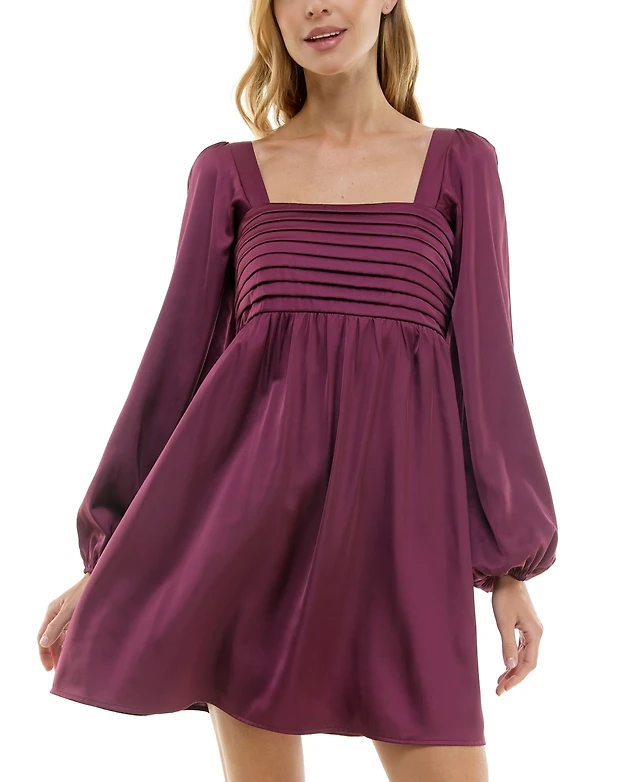 Crystal Doll Juniors' Square-Neck Balloon-Sleeve A-Line Dress