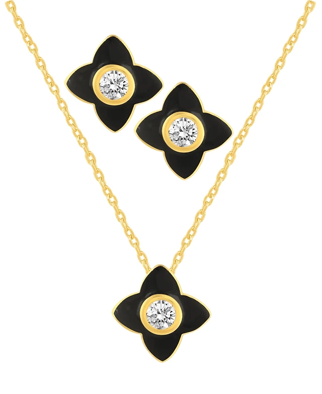 Sterling Silver 18k Gold Plated Leah Crystal Teardrop Necklace & Earrings Set