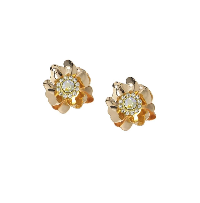 Adornia Gold Crystal Encrusted Flower Stud Earrings