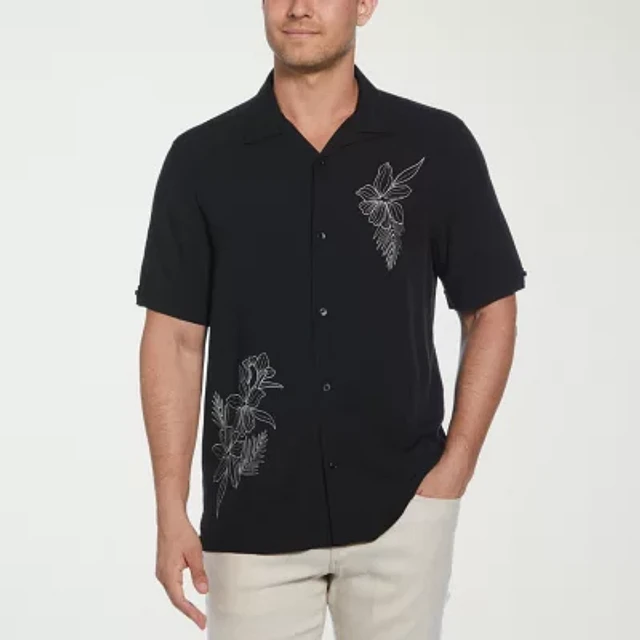 Cubavera Floral Embroidery Mens Short Sleeve Regular Fit Button-Down Shirt