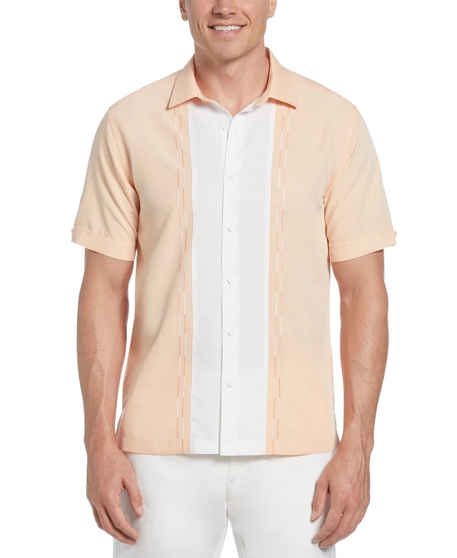 Cubavera Men's Pick Stitch Panel Short Sleeve Button-Down Shirt