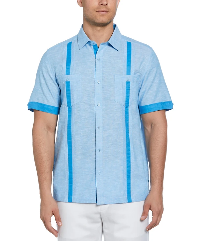 Cubavera Men's Short Sleeve Panel Button-Front Linen Camp Shirt