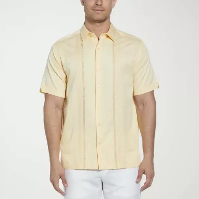 Cubavera Ombre Embroidery Mens Regular Fit Short Sleeve Panel Button-Down Shirt