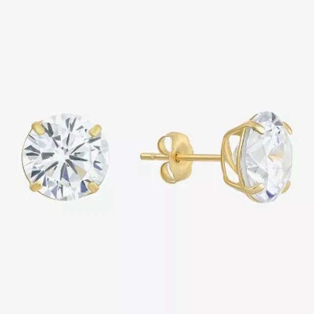 Cubic Zirconia Stud Earrings, 10K Gold Round