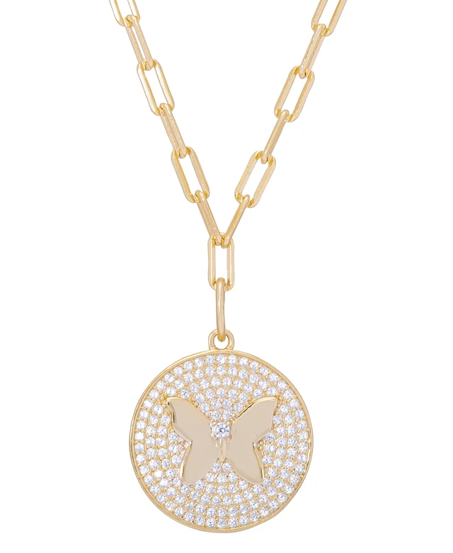 14K Gold Plated Cubic Zirconia Butterfly Pendant Necklace