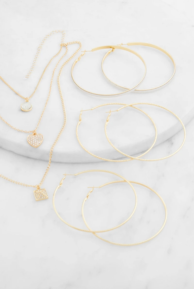 Cubic Zirconia Charm Layered Necklace and Earring Trio