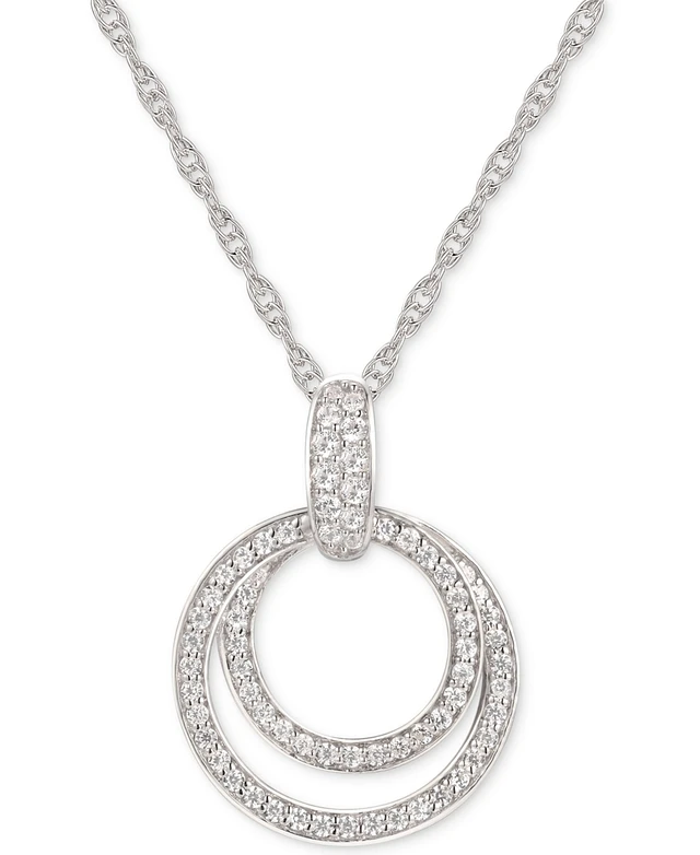 Cubic Zirconia Double Circle 18" Pendant Necklace in Sterling Silver