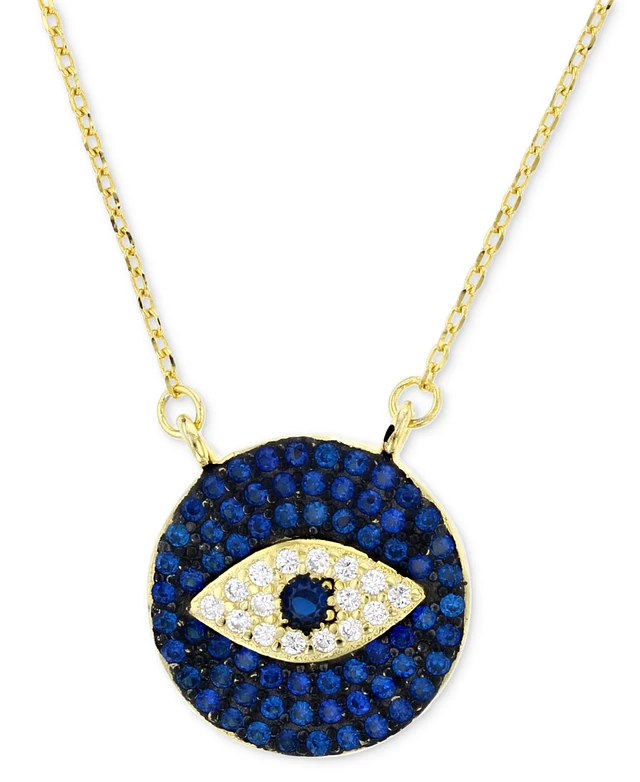 Cubic Zirconia & Lab-Grown Blue Spinel (1/20 ct. t.w.) Evil Eye Disc 18" Pendant Necklace in 14k Gold-Plated Sterling Silver