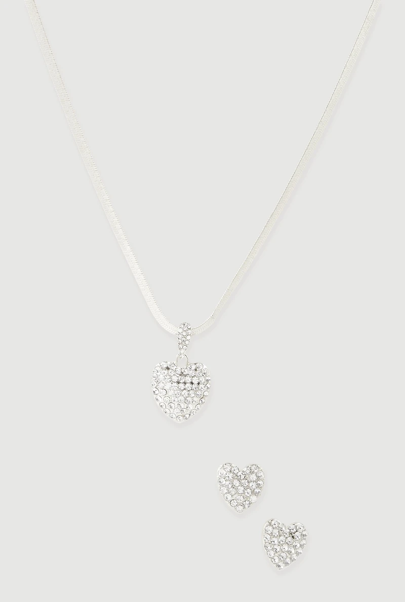 Cubic Zirconia Heart Charm Necklace and Earrings Set