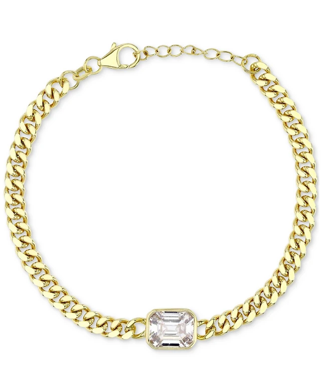 Cubic Zirconia Mixed Cut Chain Link Bracelet in 14k Gold-Plated Sterling Silver