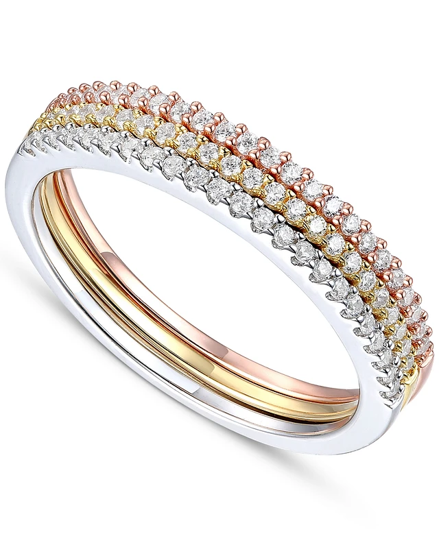 Cubic Zirconia Stack-Look Ring in Sterling Silver, Gold-Plate & Rose Gold-Plate