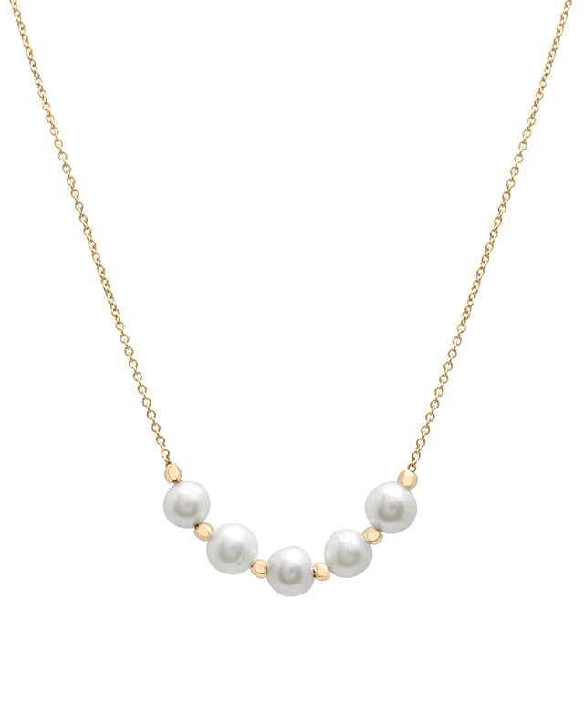 Cultured Freshwater (5mm) & Gold Bead 18" Collar Necklace in 14k Gold