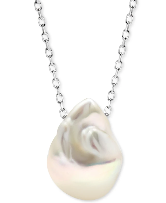 Cultured Freshwater Baroque Pearl (13-15mm) 18" Pendant Necklace in Sterling Silver