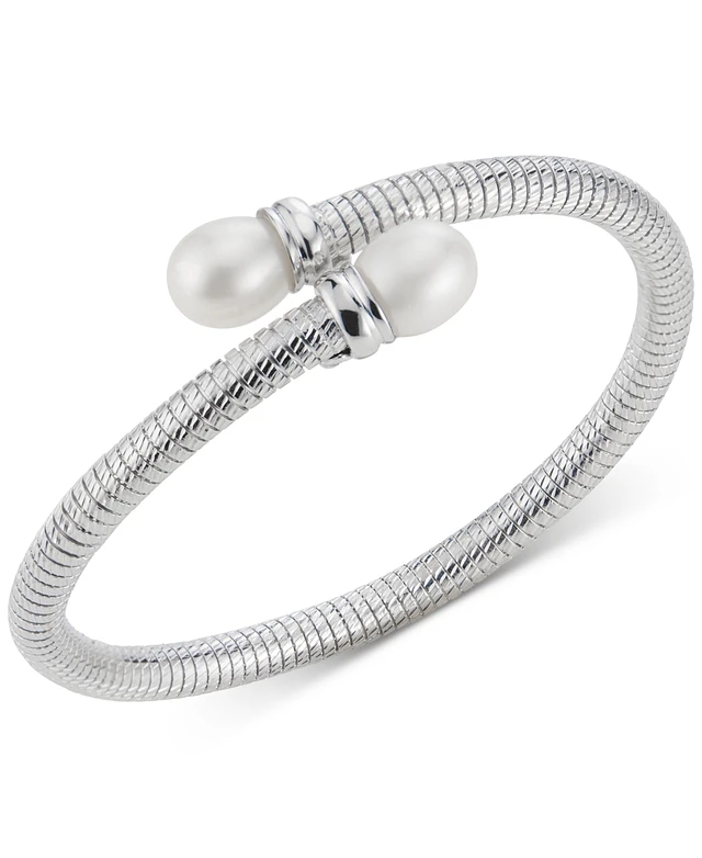 Cultured Freshwater Pearl (10mm) Tubogas Bypass Bracelet in Sterling Silver
