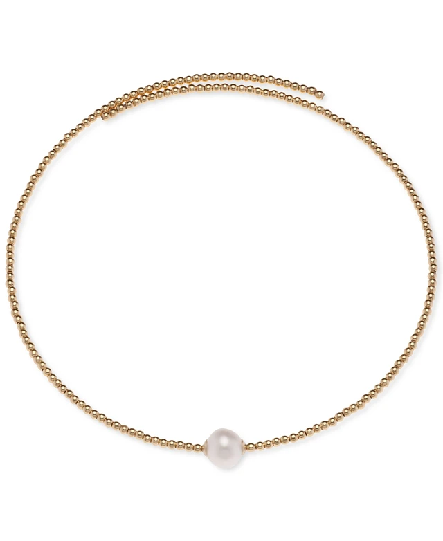 Cultured Freshwater Pearl (6-1/2 - 7mm) Solitaire Polished Bead Coil 14-1/2" Choker Necklace in 18k Gold-Plated Sterling Silver