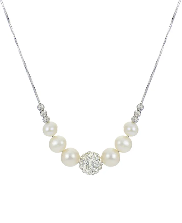 Cultured Freshwater Pearl (4 - 7-1/2mm) & Lab-Created White Sapphire (1/3 ct. t.w.) 18" Statement Necklace in Sterling Silver