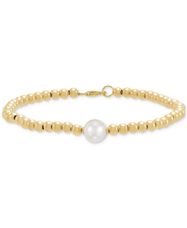 Cultured Freshwater Pearl (8-8.5mm) Beaded Bracelet in 14k Gold over Sterling Silver Made in Italy