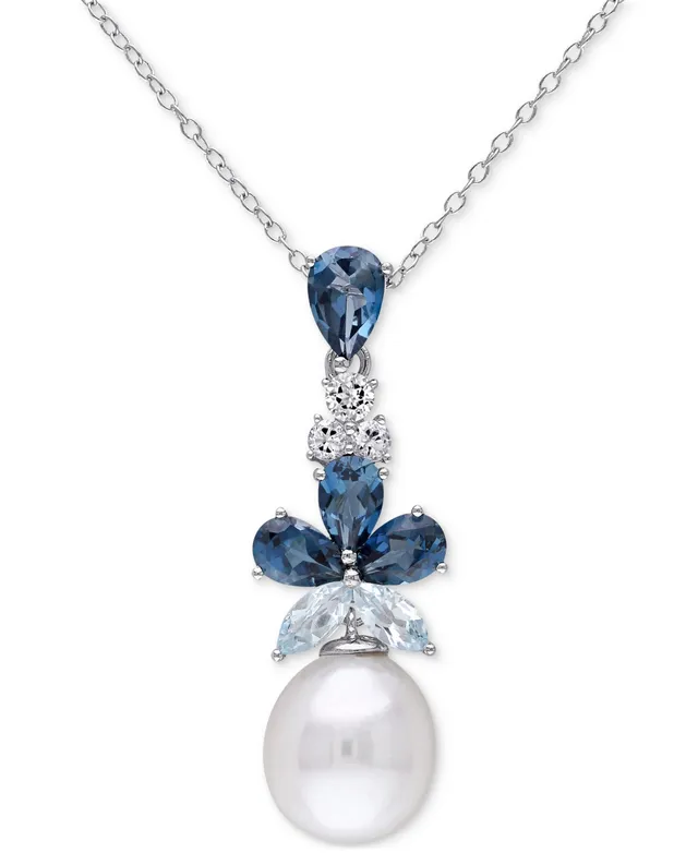 Cultured Freshwater Pearl (9-1/2 - 10mm) & Multi-Topaz (3-1/5 ct. t.w.) 18" Pendant Necklace in Sterling Silver